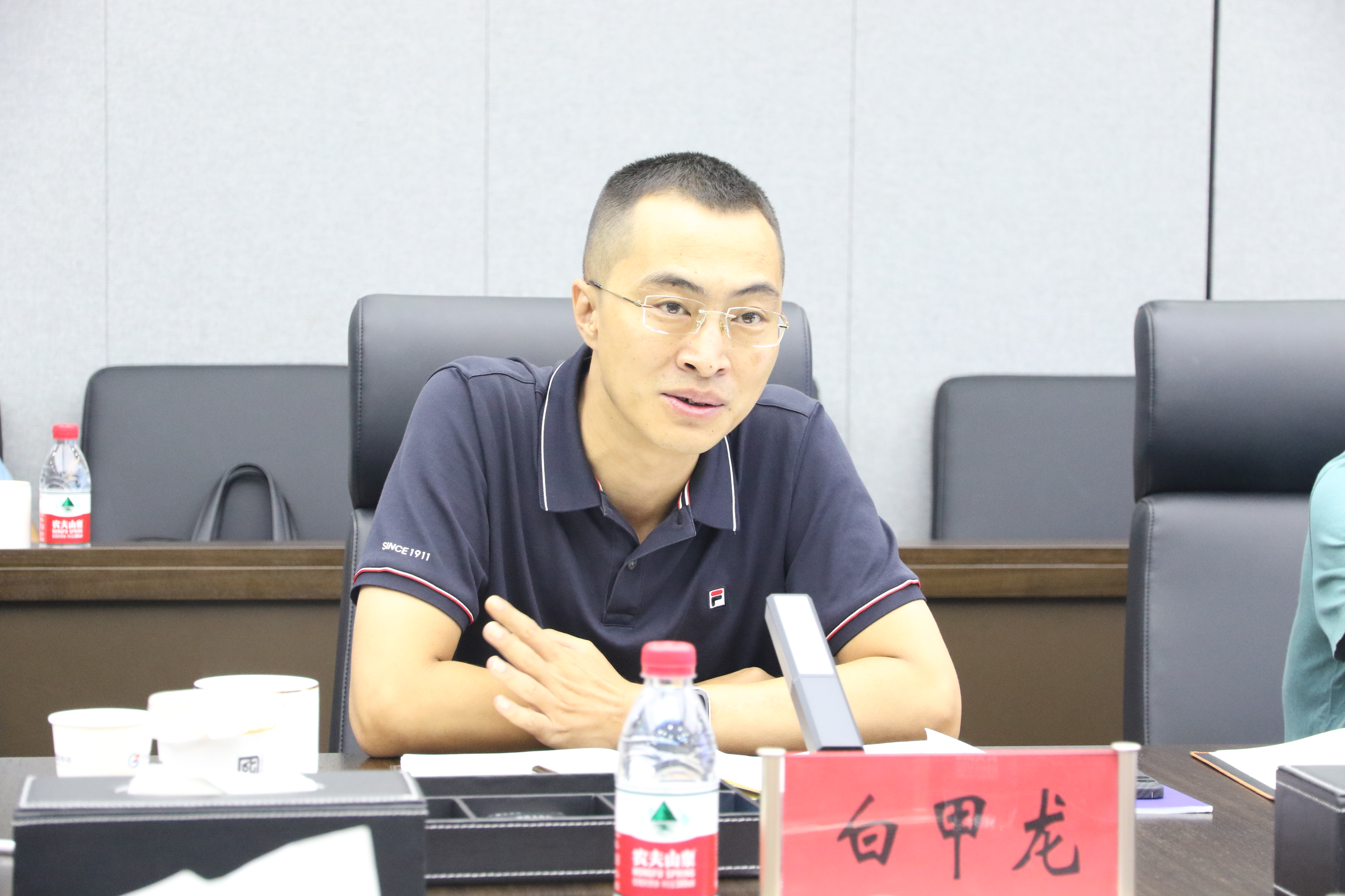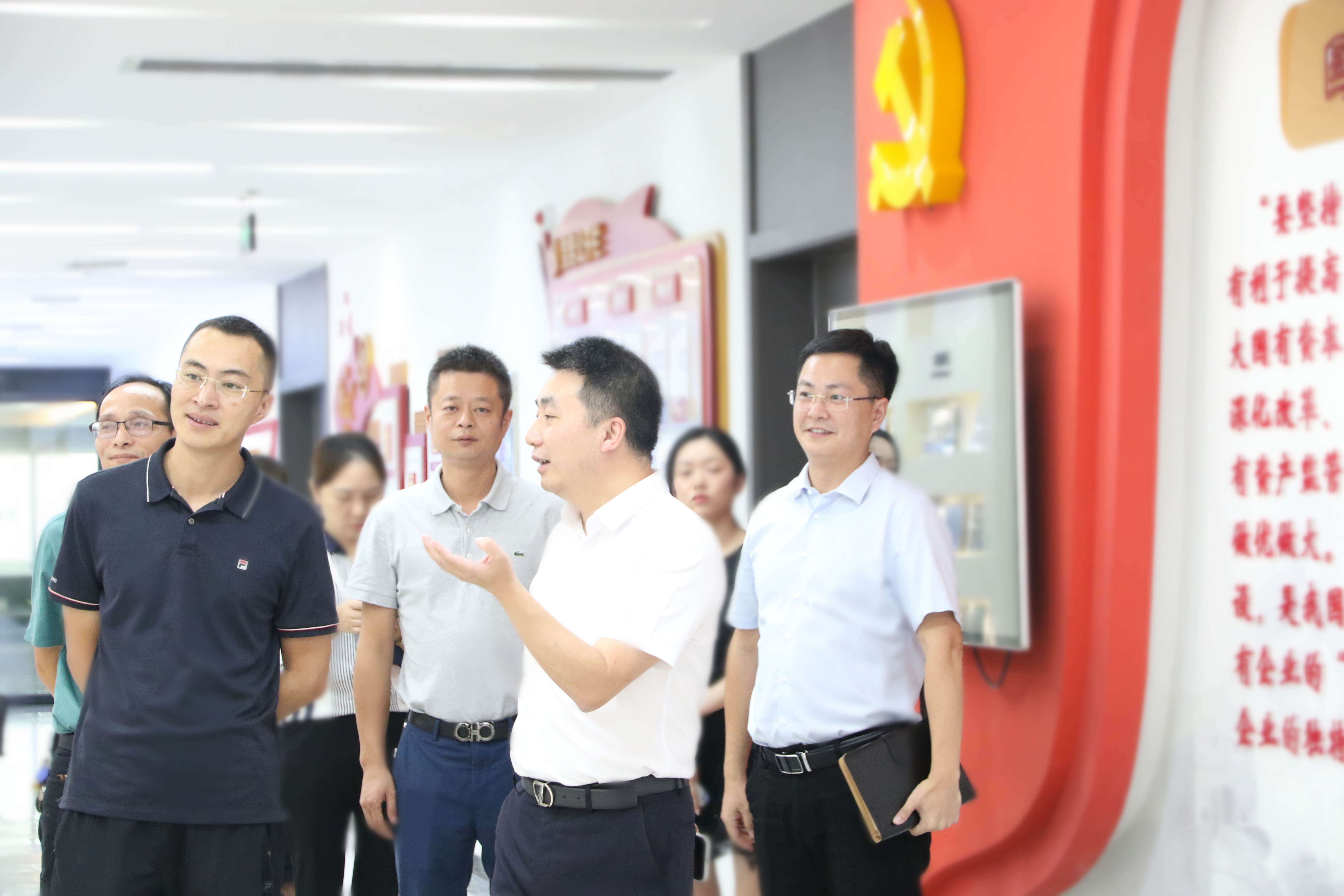 白甲龍一行邊走邊看,來到集團(tuán)文化走廊,在集團(tuán)黨委書記、董事長何競,黨委副書記、總經(jīng)理左羅,黨委委員、紀(jì)委書記、監(jiān)事會(huì)主席吳佳波等領(lǐng)導(dǎo)陪同下,詳細(xì)了解了集團(tuán)成立背景、板塊設(shè)置、業(yè)務(wù)發(fā)展等情況。